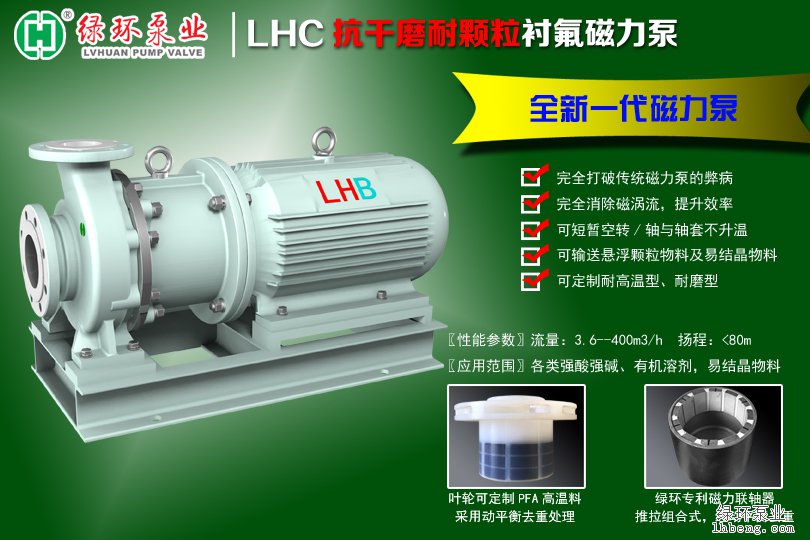 选择专业制造企业,购买高温磁力泵时,用户应当选对专业的厂家进行合作,有些买家觉得这样去辨别很累,也很麻烦。怎么办?有没有好的选择?答案是有的!为大家推荐“绿环”牌-LHC抗干磨耐高温衬氟磁力泵。