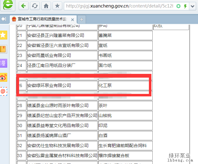 绿环市场部:12月14号,从市工商质监局传来的喜讯,绿环泵业有限公司“绿环”牌化工泵荣获《2017年度宣城***产品》。
